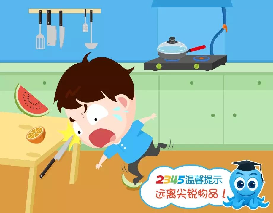 小朋友们要远离家里的刀具、绣针等尖锐物品哦,也不要在家里乱跑以免撞到有棱角的家具!