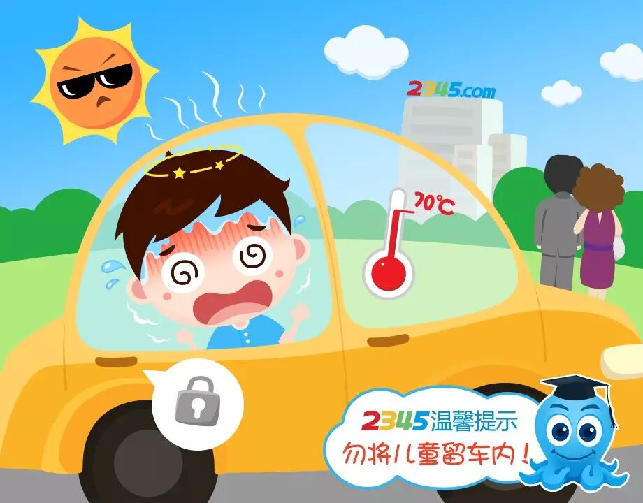 家长们,夏天停放在室外的汽车其车内温度非常高,如果停车的话千万不要把儿童独自留在车内,以免发生意外!