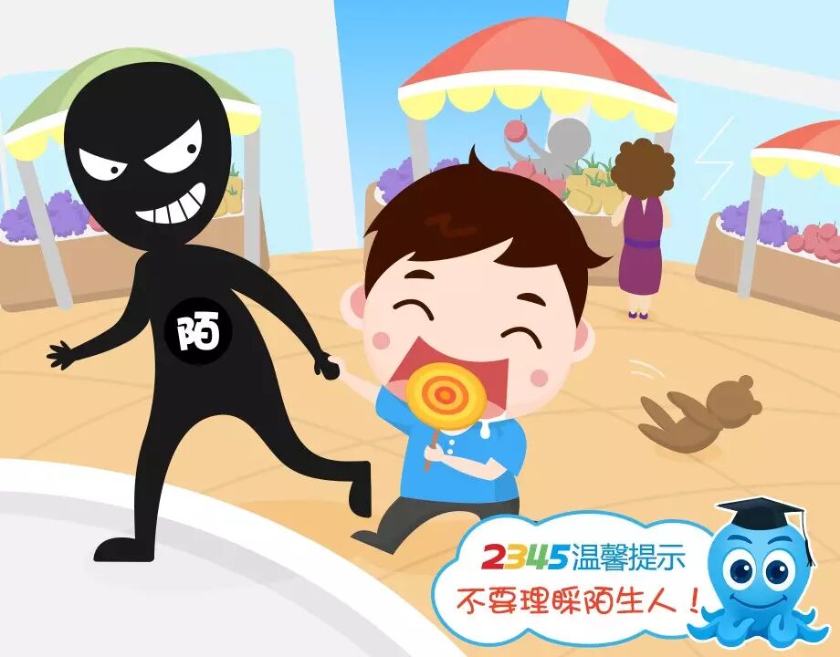 小朋友们,出门要紧跟爸爸妈妈哦,如果有陌生人搭话一定不要理睬,给的东西也不要吃,他们很可能是坏人!