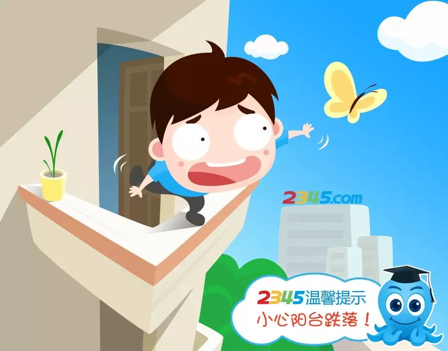 家里的窗户和阳台是用来保护我们安全的哦,千万不要随意爬到它们上面去,防止不小心摔落!