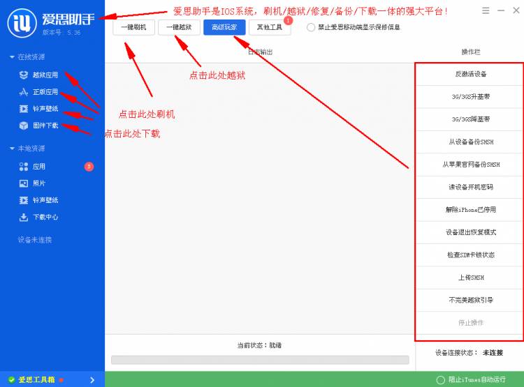 下面是苹果系统的刷机/越狱平台爱思助手与iTunes。