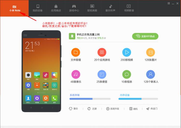 一款小米手机专用的平台,刷机、恢复还原、备份、下载均可。