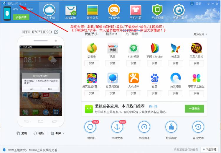 功能:刷机/解锁/解权限/备份/下载游戏/软件。